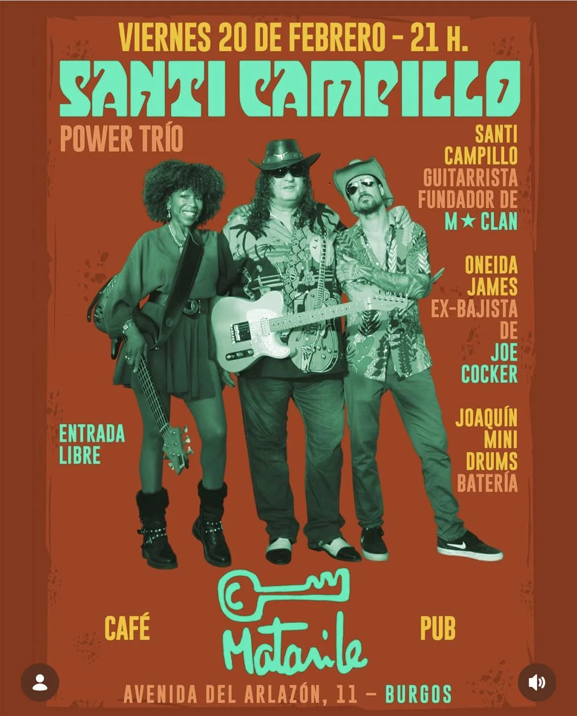Santi Campillo (M-Clan) + Oneida James (ex Joe Cocker) en Power Trío. Viernes 20 feb 21h Café Mataile Burgos. Entrada libre. ¡Rock en vivo!