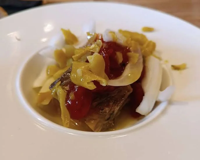 Su oferta se basa en clásicos muy reconocibles, bien ejecutados y pensados para compartir. En su carta destacan tapas y raciones como boquerones, anchoas, patatas alioli, huevos rellenos, salpicón de pulpo, bacalao ahumado, ensaladilla, así como carnes y platos caseros como albóndigas, carrillera, canelones o morro. Todo con una cocina directa, sin artificios, fiel al bar de toda la vida.