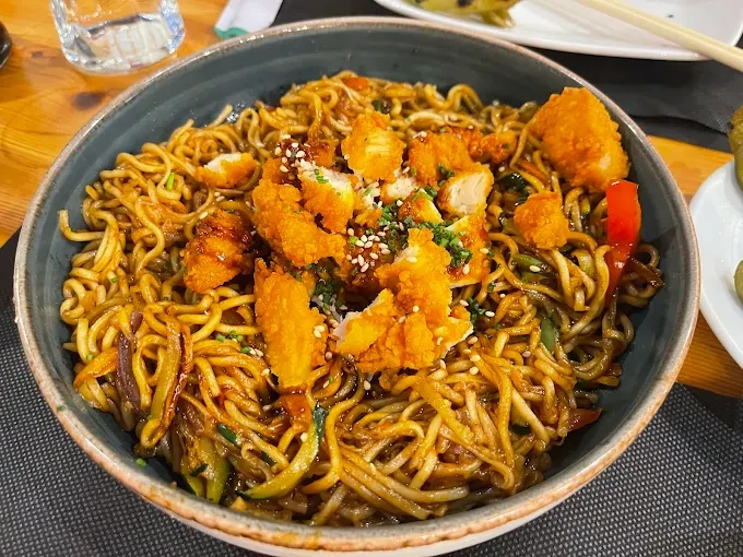 Uno de esos platos que nunca fallan. El yakisoba, tanto en su versión de pollo como de vegetales, llega jugoso, sabroso y con una ración generosa. Los fideos están en su punto, bien salteados y llenos de matices. Un plato reconfortante que demuestra que lo sencillo, cuando se hace bien, funciona.