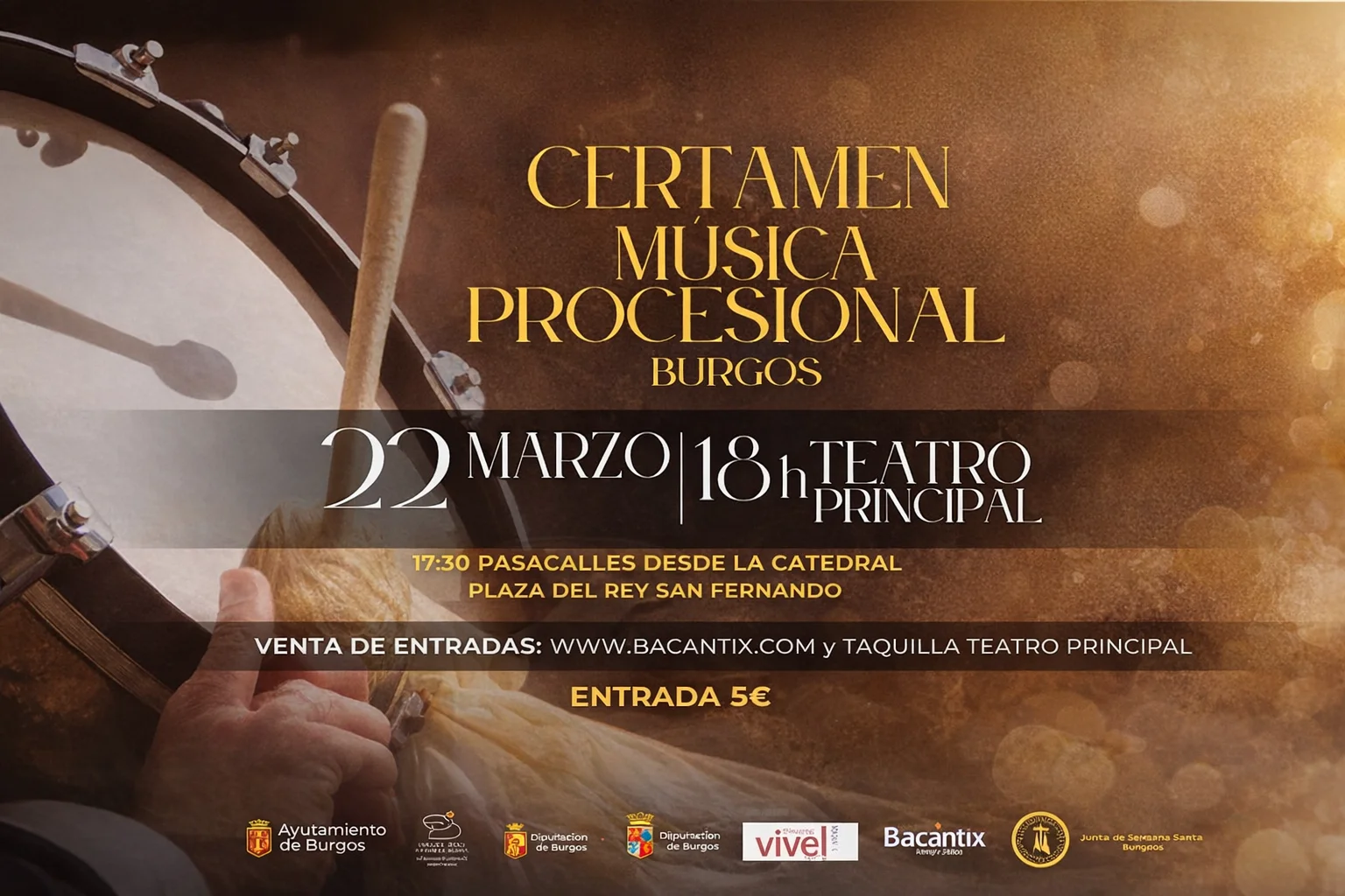 La Junta de Sema Santa de Burgos organiza un certamen procesional con pasacalles y concierto en el Teatro Principal; entradas a 5 euros.