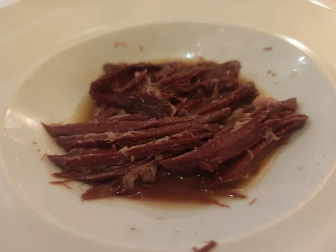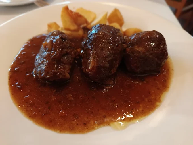 Uno de los grandes rasgos distintivos del restaurante es su apuesta por el cuchareo y los platos de fondo largo, una cocina que requiere paciencia y técnica. En su carta destacan elaboraciones como los callos —recientemente reconocidos en un concurso nacional—, la carrillada de novillo al vino tinto, la lengua estofada o las patitas de cordero, recetas que conectan directamente con la tradición gastronómica.